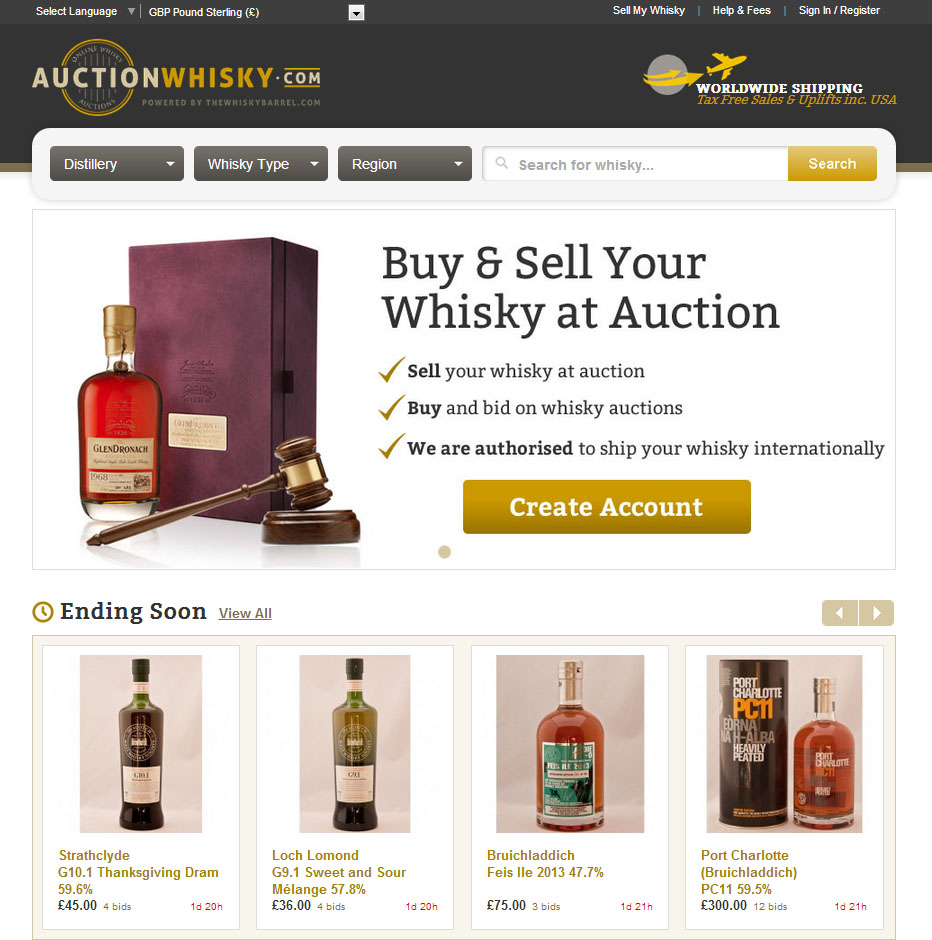 AuctionWhisky.com’s homepage